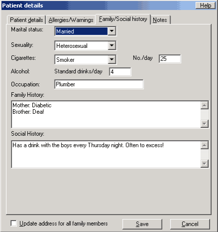 section of the Patient Details. Recording of alcohol use is valuable